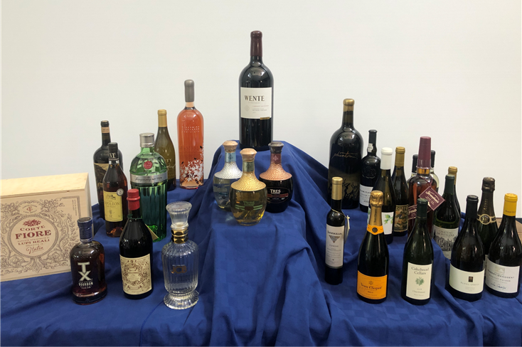 This year's collection includes the following amazing items: Wente Charles Wetmore Cabernet Sauvignon, Taylor Fladgate Vintage Porto, Van Duzer Chardonnay (2), Vallein Tercinier Napoleon Cognac, Lail Sauv Sauvignon Blueprint (2), Bogle Phantom Red Blend 2016, Stranahan's Sherry Cask Single Malt Whiskey, JCB Vodka, Alpha Omega Napa Chardonnay, Wooden Crate of 6 Corte Fiore Lupi Reali Appassimento, Tanqueray 10 Gin, Veuve Clicquot Brut, Inniskillin Ice Wine, Denogent Pouilly-Fuisse La Croix, Blackbird Arriviste Rose, Booker White Blend, Chateau Montelena Chardonnay, Juggernaut Hillside Cabernet Sauvignon, TX Bourbon, Aubry Brut, Cakebread Chardonnay, Carpano Antica Vermouth, Fisher Unity Chardonnay, Tres Generations Reposado, Tres Generations Anejo, Tres Generations Blanco, Fever Tree 8-Pack Ginger Beer, Fever Tree 8-Pack Club Soda, Fever Tree 4-Pack Tonic Water, Shaker Set, Bartender's Black Book, Double Jigger with Handle